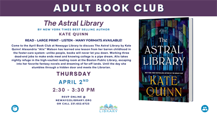 Come to the April Book Club at Newaygo Library to discuss The Astral Library by Kate Quinn!