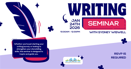 Whether you're just starting your writing journey or looking to strengthen your storytelling skills, this seminar is designed to inspire and guide you. Sydney will share an engaging presentation on what goes into building a strong story, covering everything from plot development to the elements that make characters feel real and memorable.